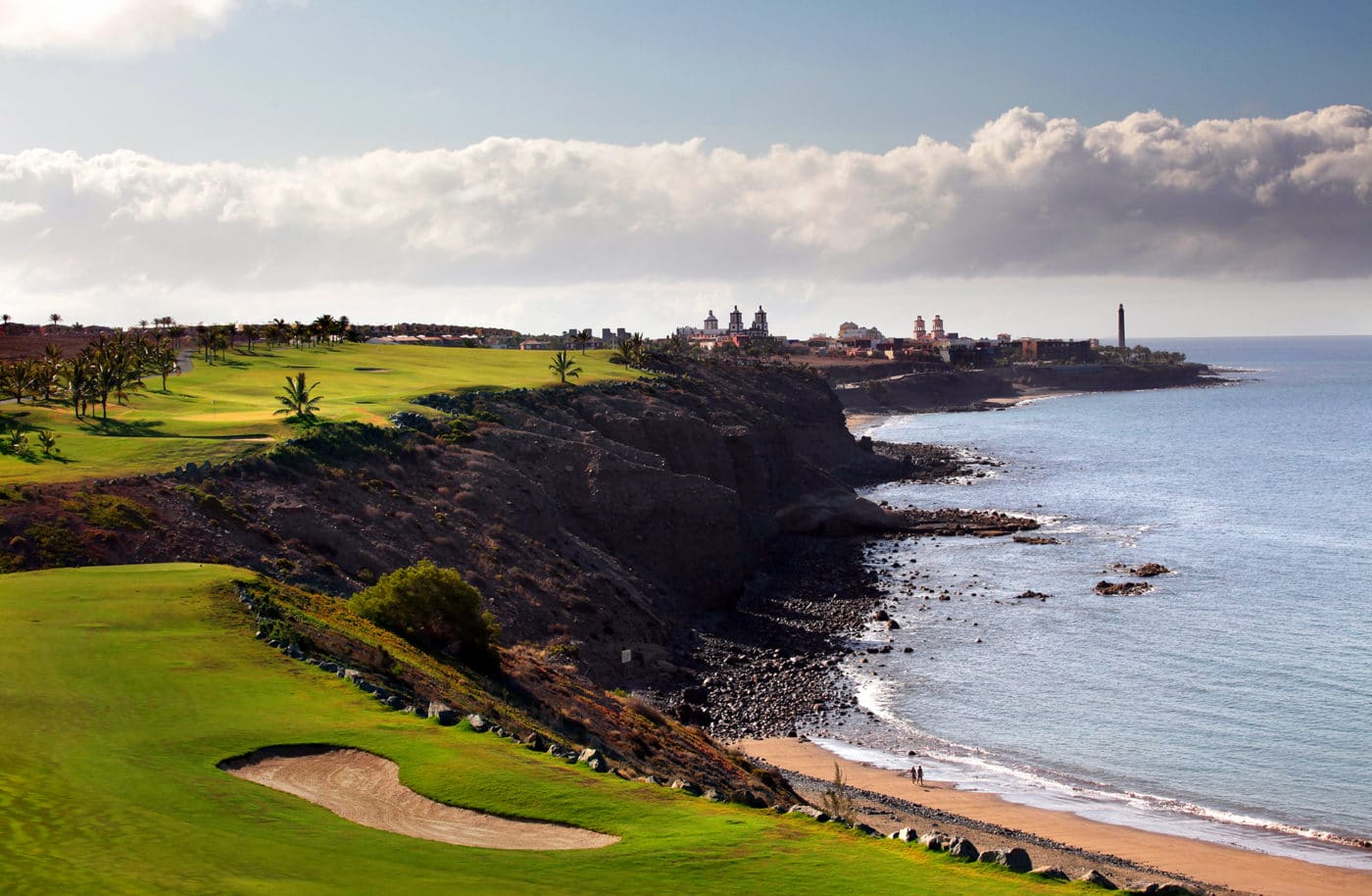 Maspalomas Golf täydentää todella Melonerasia ja Anfi Tauroa saaren eteläosassa. Maspalomas on klassinen espanjalainen puistokenttä. Maspalomas avasi portit jo vuonna 1968. Kentällä on myös skotlantilaisia elementtejä, eikätkä nämä rajoitu ainoastaan kenttää rajaavan luonnonsuojelualueen dyyneihin, vaan kentän suunnittelija on myös skotlantilainen golfkenttäarkkitehti. Mackenzie Ross on mies tämän luomuksen takana. Kuten useimmat vanhemmat golfkentät, alue on suhteellisen tasainen ja väylillä on hyvin pientä aaltoilua. Tämä tarkoittaa, että se on helppo kävellä, eikä golfautoa tarvita. Takana olevat vuodet, näkyvät muun muassa siinä, että puut ja pensaat ovat kasvaneet hyvin ja ne antavat jokaiselle reiälle kauniin kehyksen. Hallitsevimmat skotlantilaiset elementit löytyvät ensimmäisiltä yhdeksältä reiältä. Monet näistä rei’istä ovat suorassa yhteydessä valtaviin hiekkadyyneihin, ja voit myös nähdä meren. Maspalomas ei ole pitkä kenttä, mutta siinä on haasteensa, varsinkin jos sää sattuu olemaan yhtään tuulinen. Vaikeusaste kasvaa kentän loppua kohti ja viimeiset reiät ovat todella haastavia. Monet vielä tässä vaiheessa tasan olevat pelit voidaan ratkaista jo väylällä 16, joka on par 3 -reikä, jossa on suuri lampi, mikä pitää ylittää. Jos päätöstä ei tehdä täällä, viimeinen par 5 -reikä voi tuottaa monenlaisia tuloksia. Ihanan golfkierroksen jälkeen kannattaa piipahtaa klubitalon ravintolaan, joka on varsin korkeatasoinen. On huomionarvoista, että monet Gran Canarialla vanhainkodissa asuvista senioreista pelaavat Maspalomasissa ja asettavat ravintolalle hieman korkeampia vaatimuksia, kuin viikoksi vierailevat turistit. On ihana fiilis istua mukavalla ulkoterassilla ja katsella ensimmäistä väylää pelaavia ja puttiviheriöllä lämmitteleviä pelaajia.