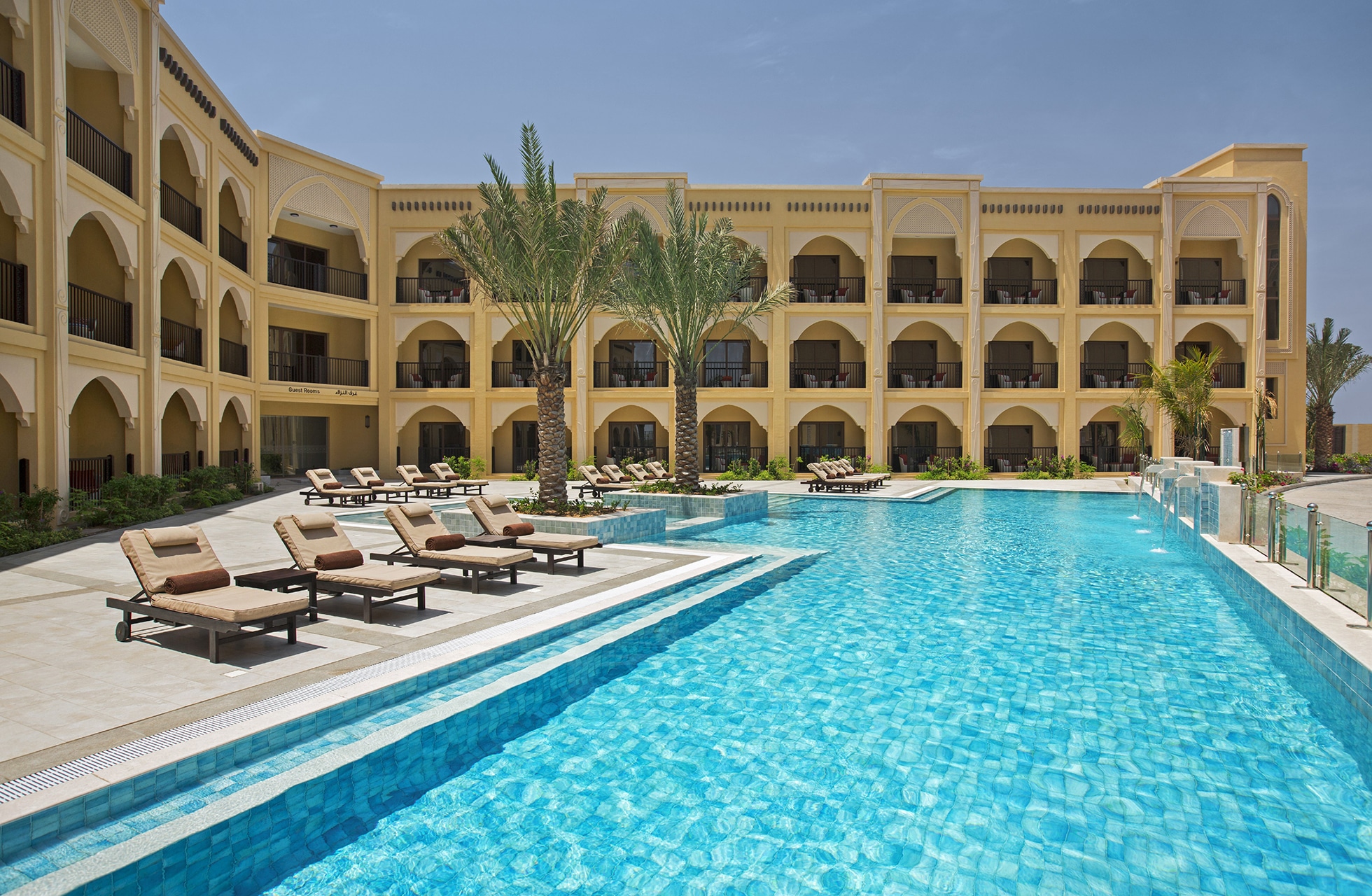 Doubletree by Hilton Resort & Spa Marjan Island on 5-tähden hotelli erinomaisella sijainnilla niemen kärjessä, jota ympäröi lämmin Persianlahti. Täällä voit kokeilla erilaisia vesiurheilulajeja tai vain nauttia yksityisestä, hienorakeisesta ja valkoisesta hiekkarannasta vain muutaman metrin päässä hotellista. Majoitus on tietysti upea, kaikissa huoneissa on merinäköala ja parvekkeet. Huoneet ovat suuria ja modernisti sisustettuja. Hotellista löydät kaikki mahdolliset mukavuudet, kuten useita baareja ja ravintoloita sekä kuntosalin. Runsaan aamiaisbuffetin lisäksi kuusi illallista sisältyy buffetravintolassa. Äläkä unohda käydä hotellin baarissa yläkerrassa, josta näkymät ovat uskomattoman hienot. Kuljetukset hotellilta kentälle kestävät noin 5-7 minuuttia ja sisältyvät hintaan ennalta määriteltyinä aikoina.