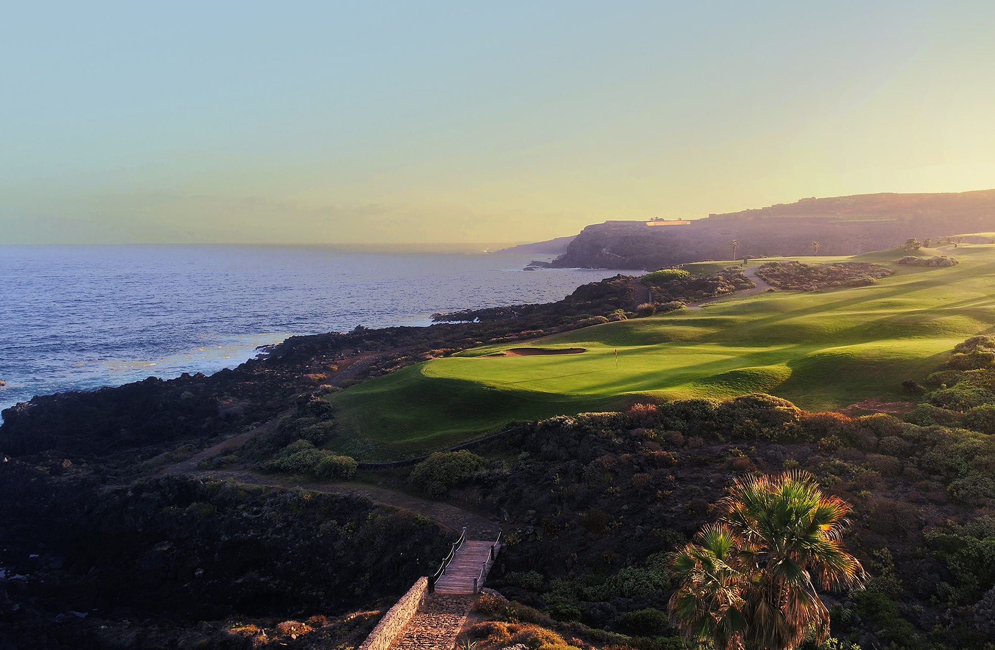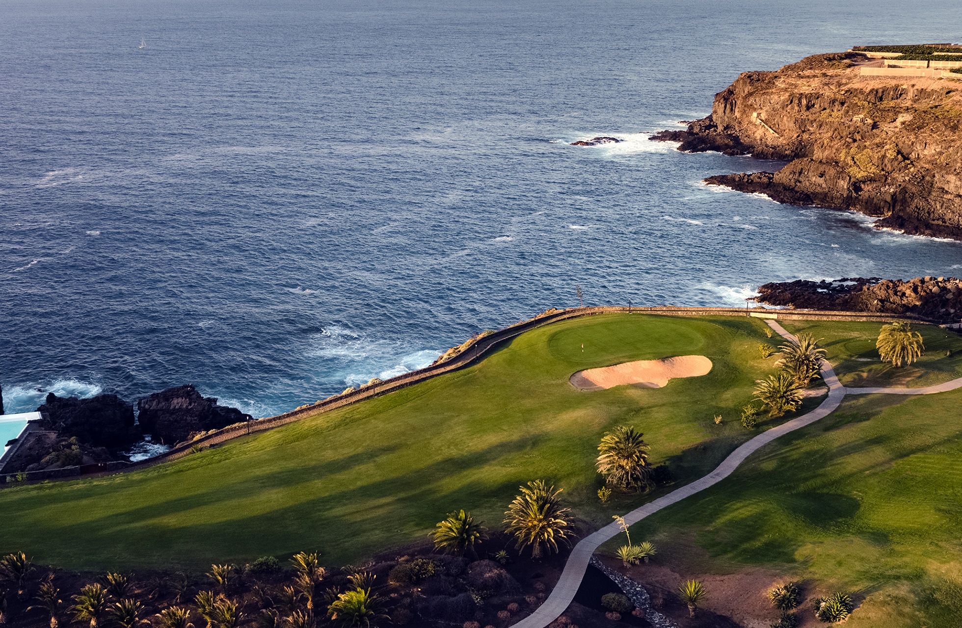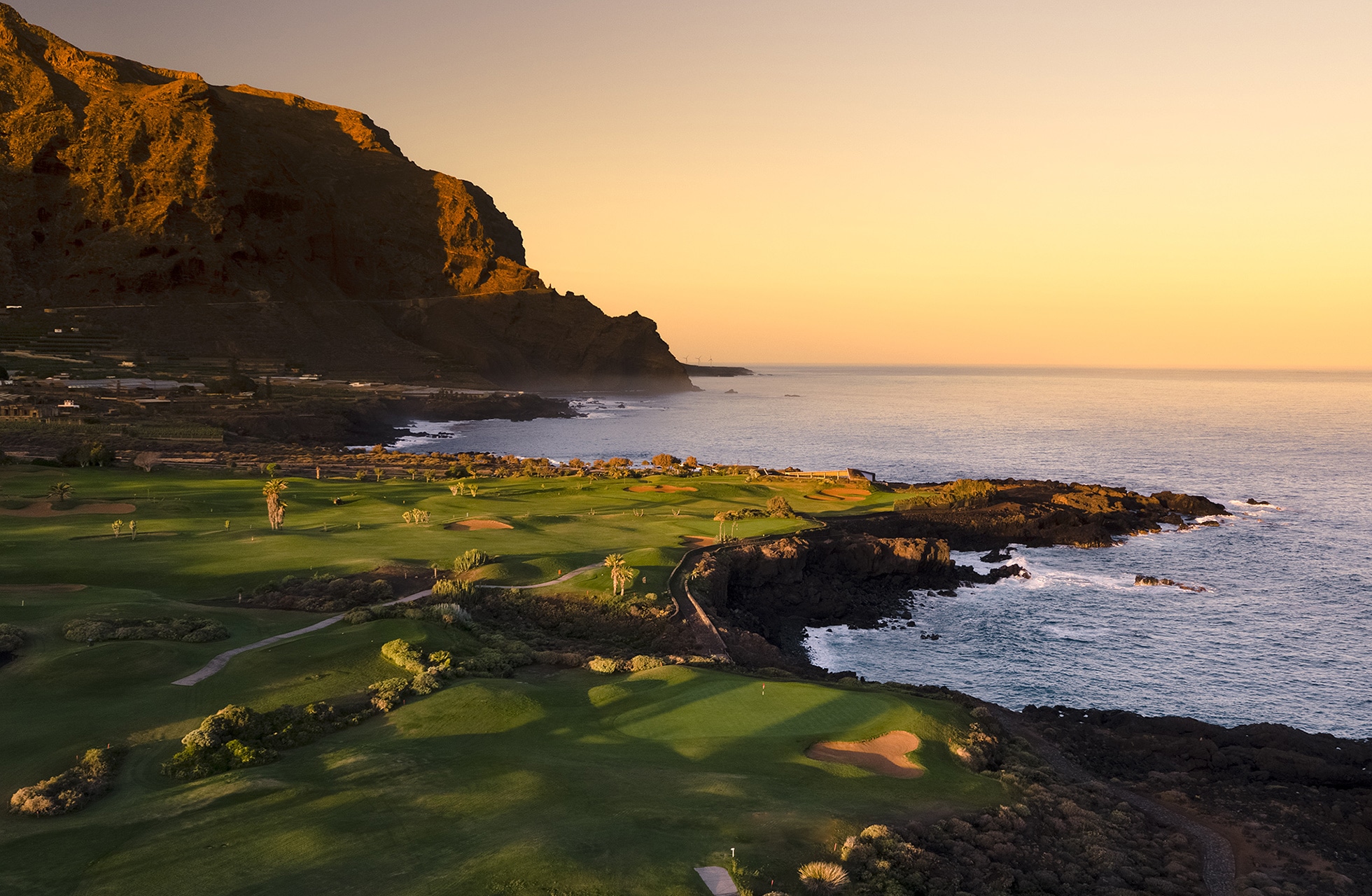 Kokemus, jonka 10. reikä saa aikaan on unohtumaton ja monet pitävät sitä suosikkinaan. Atlantin aallot tyrskyävät kallion yli griinin reunalla, legendaarisen S-muotoisen Ballesteros-bunkkerin vieressä. Myös 15. reikä on kerännyt paljon suosiota. Tällä 185 metrisellä par 3:lla on griinin yli menevällä lyönnillä mahdollisuus päätyä suoraan Atlantin päälle. Kuten voit jo kuvitella, Buenavista on golfkenttä, jossa maisemat ja näkymät ovat ehdottomasti huippuluokkaa. Koko golfkeskus sijaitsee rinteessä kohti merta, ja silmiinpistävän merinäköalan taustalla on mahtavat Teno-vuoret. Buenavistalta löytyy kuusi par 5, kuusi par 4 ja kuusi par 3 reikää. Jokaiselle löytyy siis jotakin tasosta riippumatta. Mutta pysy väylällä: laavakivet ja kaktukset rajaavat useimpia reikiä ja kaikki muut väylät sijaitsevat suoraan vaahtoavan meren vieressä.