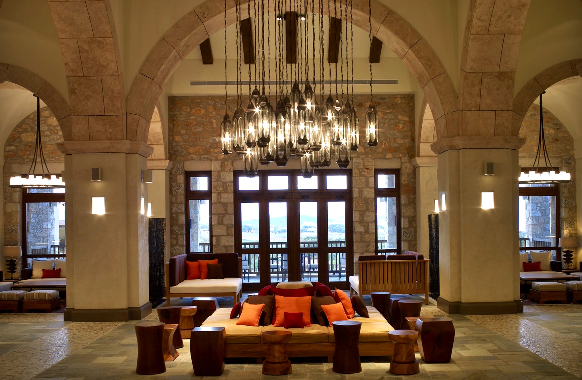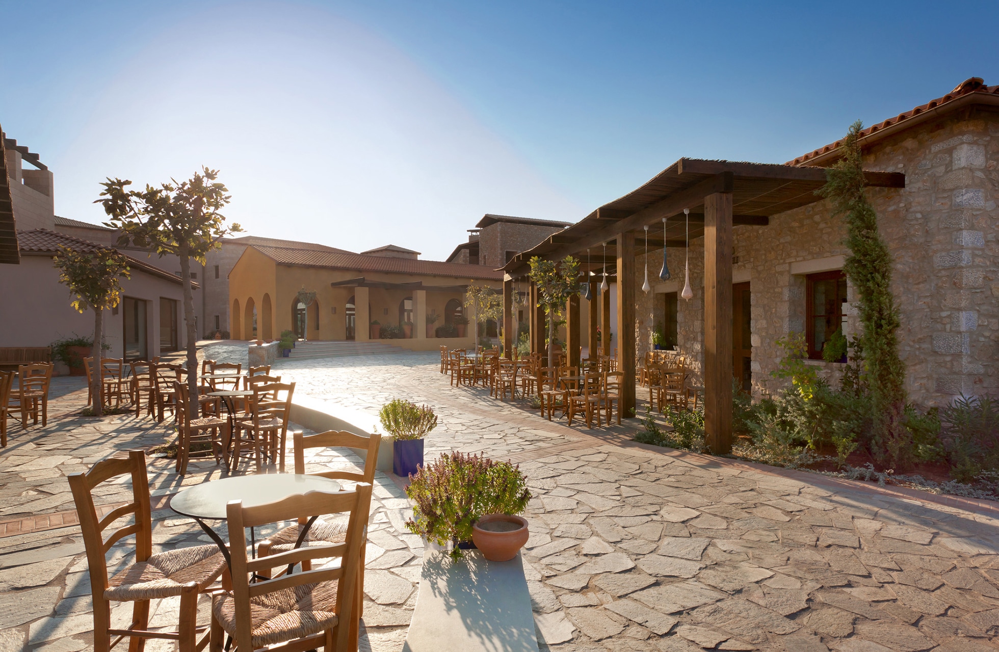 Kaksi luksushotellia sijaitsevat lähekkäin Costa Navarinon alueella.  Romanos Resort by Marriott Luxury Collection on ylellinen ja erittäin korkeatasoinen hotelli, joka tarjoaa yksityisyyttä, estetiikkaa ja upean palvelun.  Alueella on myös paljon ravintoloita, jossa on tarjolla niin italialaista kuin japanilaista ruokaa, mutta myös paikallisia herkkuja saa Moria ravintolasta.